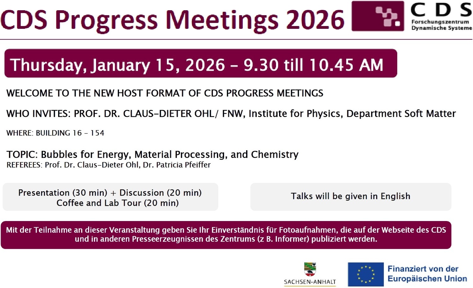 Insbesondere interessieren uns Phasengrenzen, d.h. Gasblasen, dekorierte Blasen, Dampfblasen in Hydrogelen, Tropfendynamik, Wechselwirkung von Zellen mit Strömungen und akustischen Wellen und Kavitation im Allgemeinen.