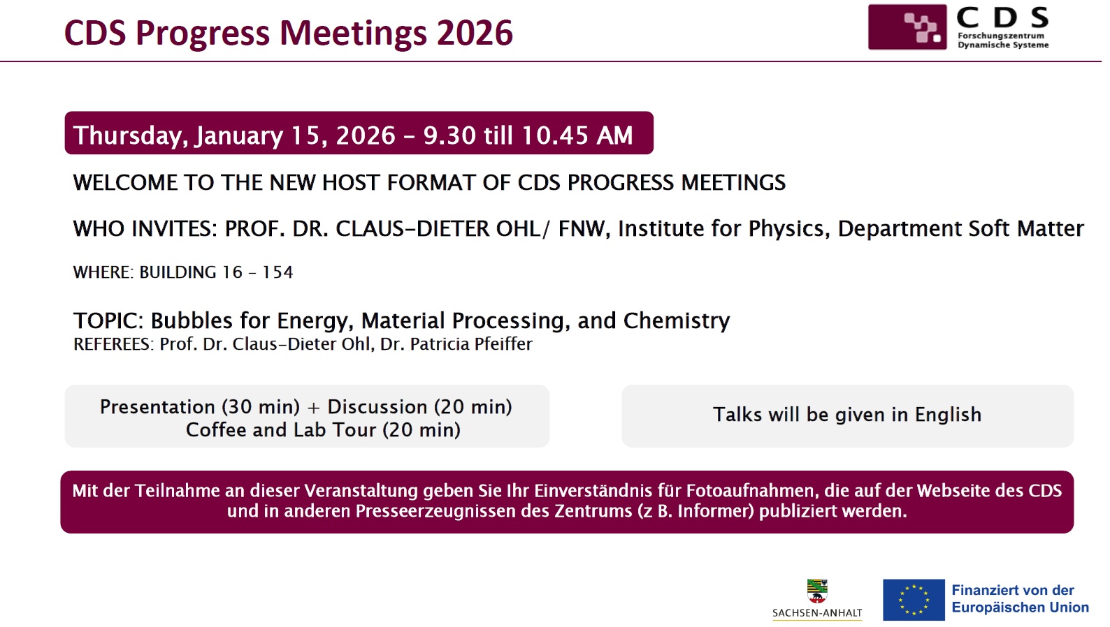 The event is open to all interested guests from the university and the Max Planck Institute